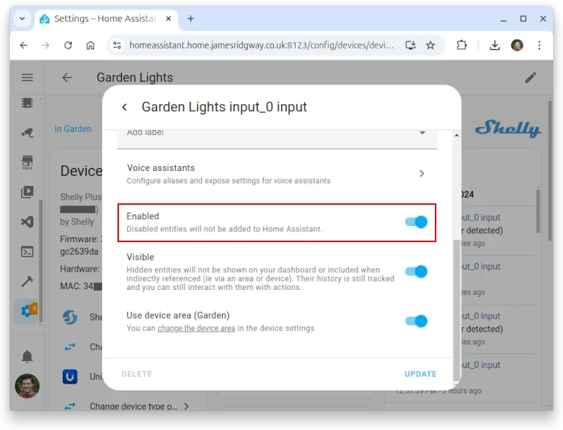 Once the Innr GU10 bulbs and the Shelly Plus 1 Mini is installed, we'll need to configure the Shelly and Home Assistant for our new setup.