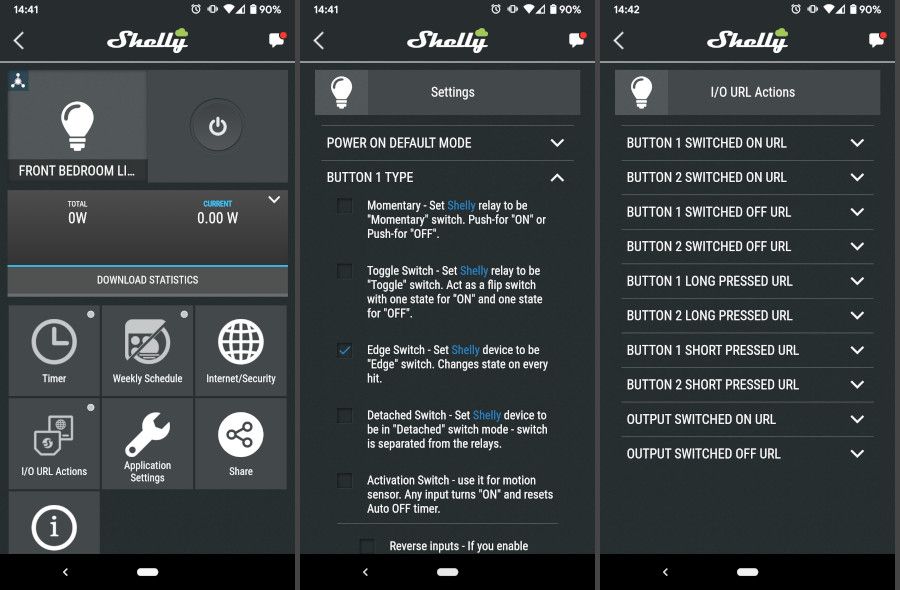 I can use the Shelly app to turn the device on and off, as well as configure some built-in functionality, such as timers and webhooks.